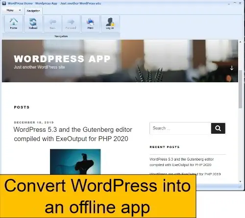 ExeOutput for PHP can compile complex PHP websites such as WordPress. Your websites powered by WordPress can be turned into stand-alone Windows applications.