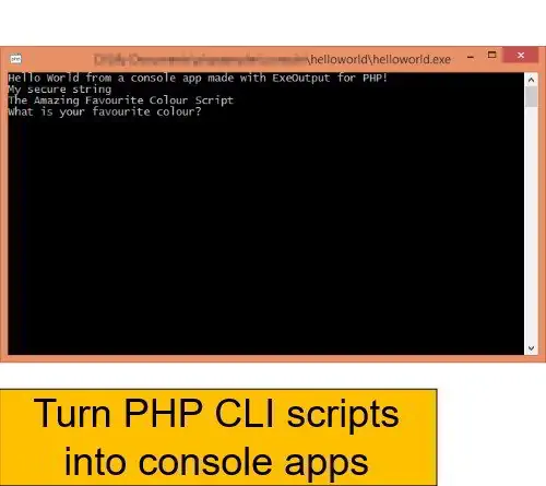 Create console applications with no GUI thanks to ExeOutput for PHP. Distribute these stand-alone applications that work as if PHP was run in CLI mode.