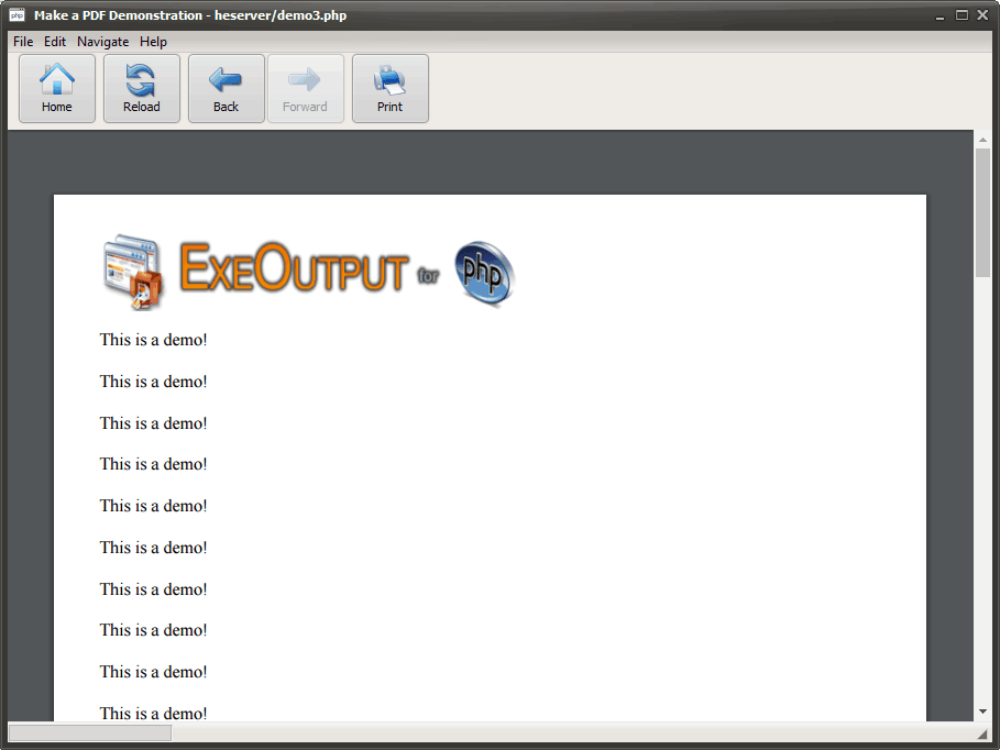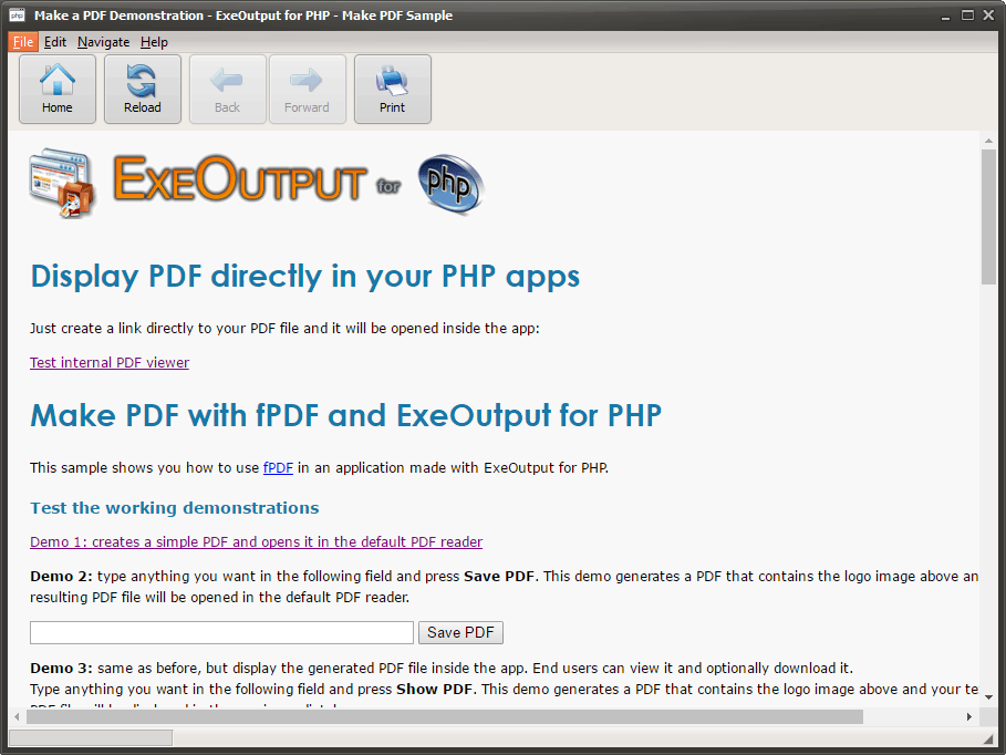 2) Open the pdfdemo.exop project file with ExeOutput for PHP and compile it yourself.